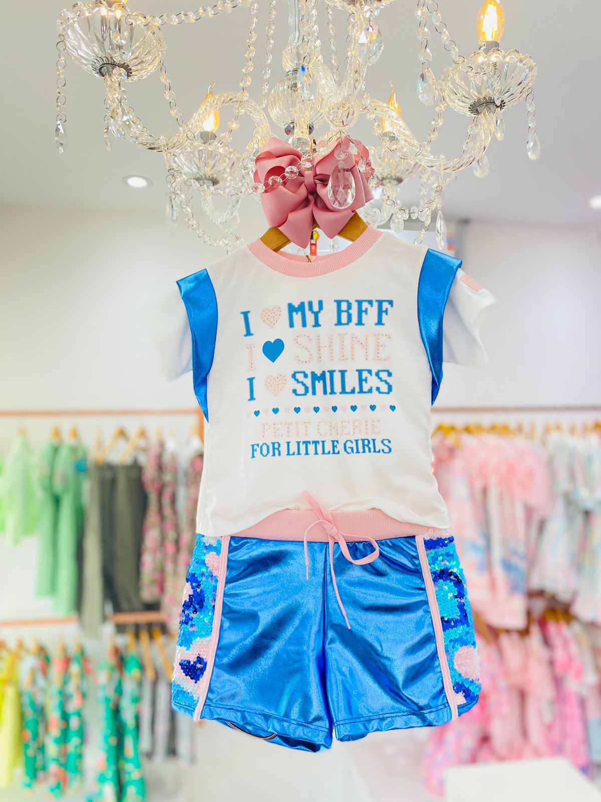 Conjunto com detalhes no paete, o conjunto perfeito para as meninas que amam um look estiloso.